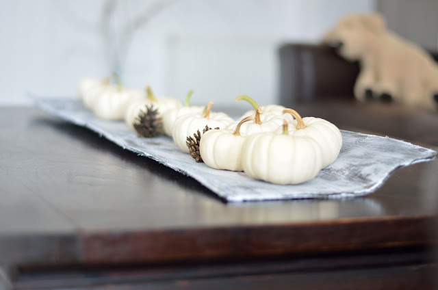 24. C U D N A - dekoracja stołu ... te maleńkie białe dynie i deska ...